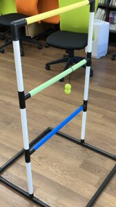 ボールがラダーに引っ掛かる(ハングする)と得点となるゲームです。